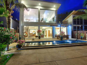 Indu Beach Villa was designed by your host to a 'Thailand meets Miami' style, as a luxury family home, with traditional Thai features and bespoke artwork depicting the local area. Panoramic windows open to draw cooling breezes down from the mountains through the villa to the ocean.