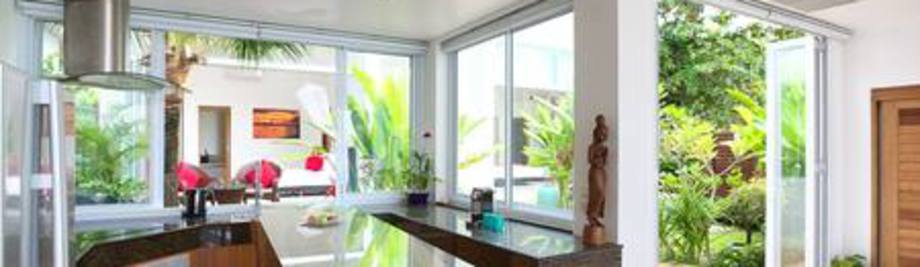 The villa features tinted windows which draw back the full width of the house, drawing a beautiful tropical breeze through the villa and affording unbroken panoramic views of the beach and sea.
